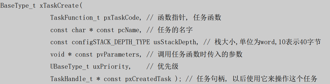 可以回顾:【FreeRTOS】第二课:创建第一个多任务系统 _xtaskcreate参数-CSDN博客
