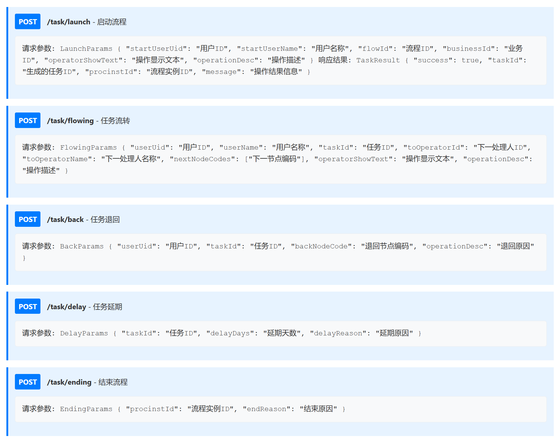 - 返回结果: 返回任务ID和流程实例ID