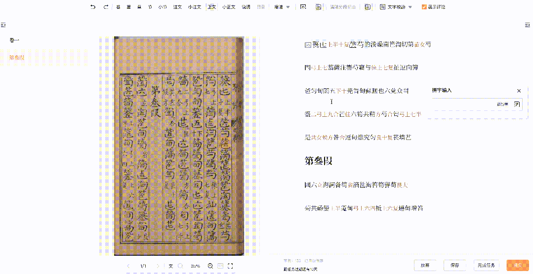 就在不久前,针对古籍数字化中最棘手的生僻字问题,识典古籍平台推出了编辑器造字、拼字、字图复制功能,将古籍数字化工作的效率又向前推动了一大步。