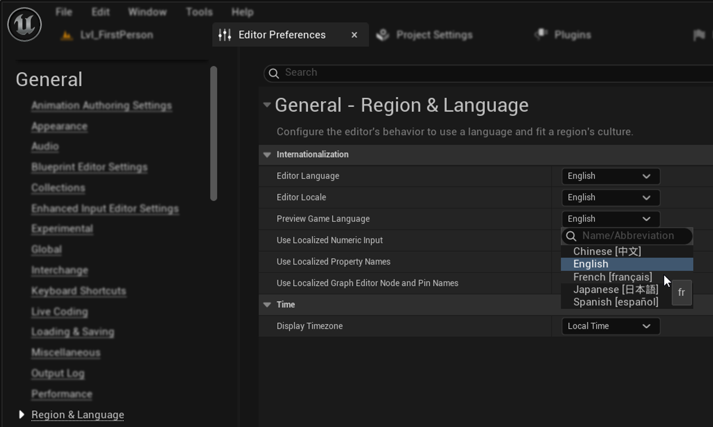 UMG:使用UMG编辑器预览面板中的语言选择器