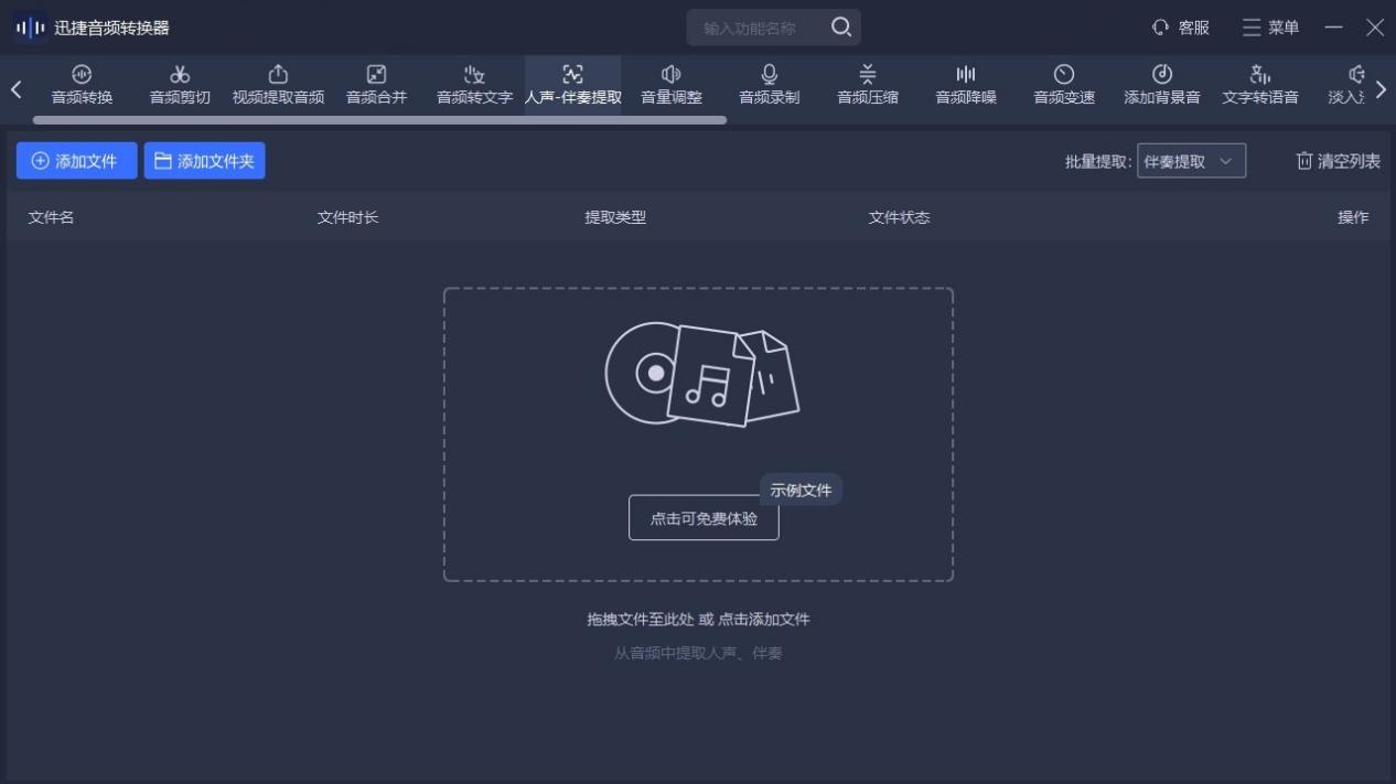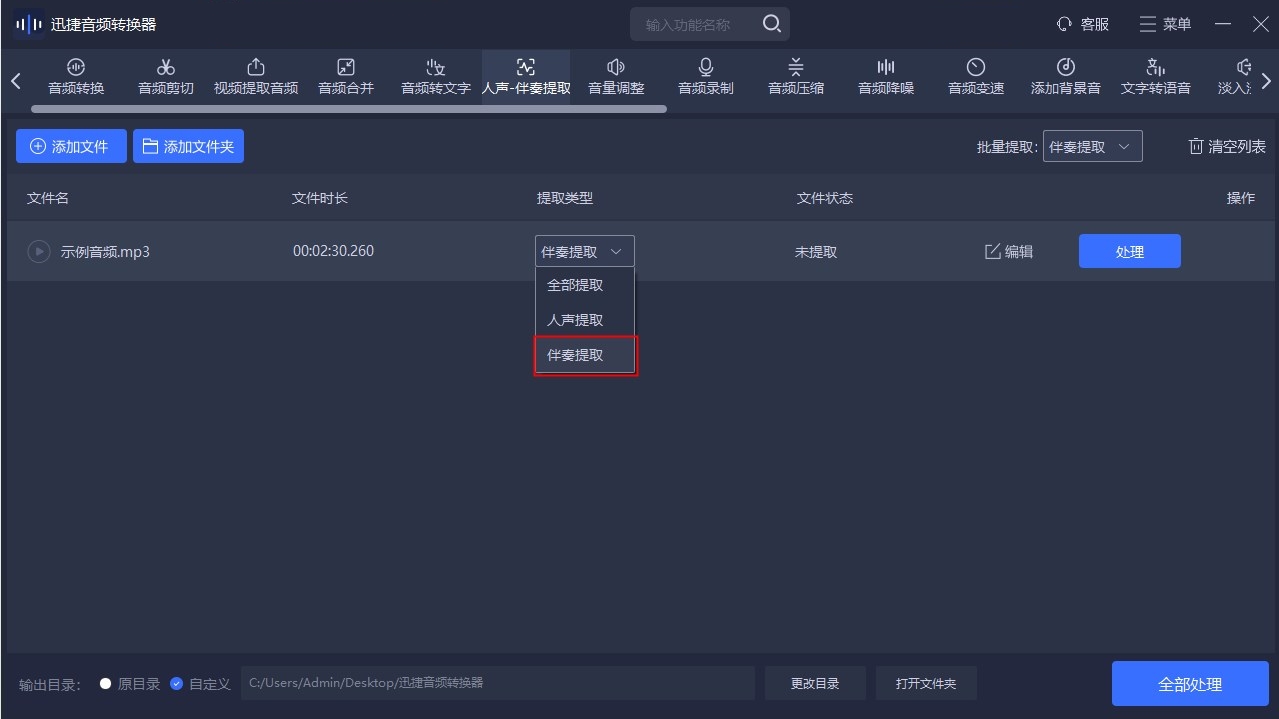 作为国内用户友好的桌面工具,迅捷不仅支持音频格式转换,更内置“人声伴奏分离”功能,一键提取伴奏。