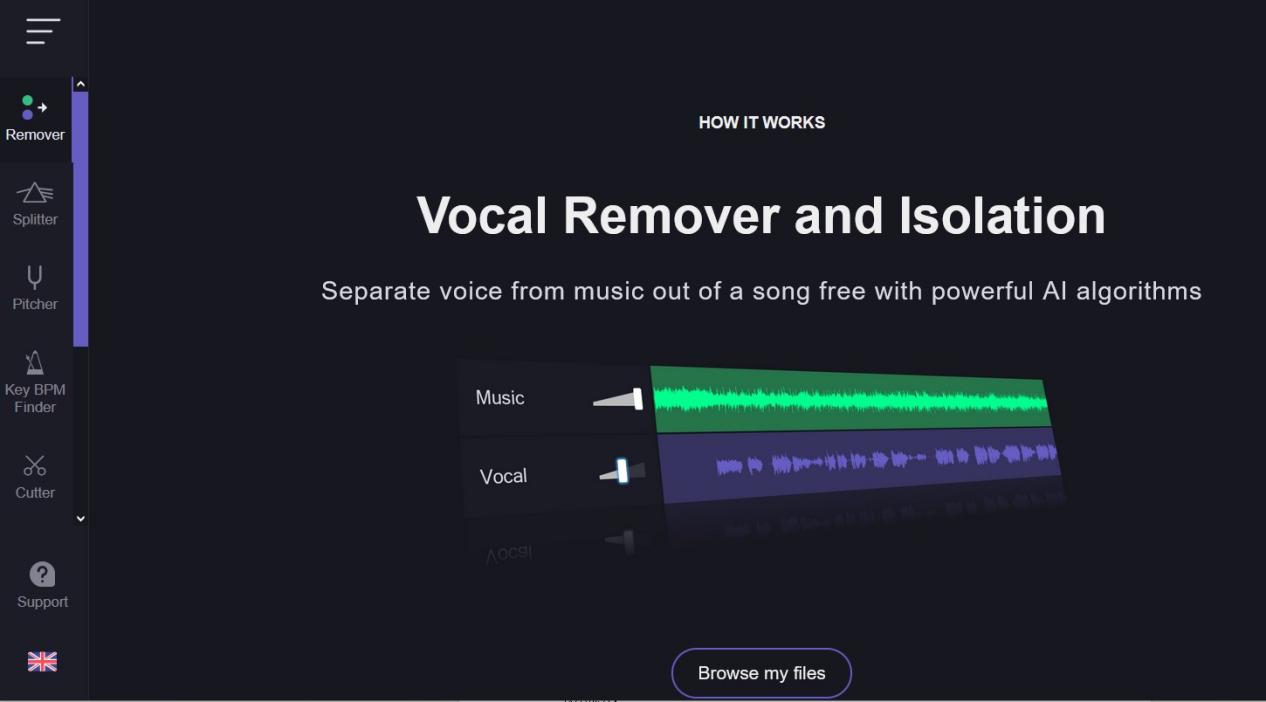 上传即自动分离,支持批量处理,网页操作流畅。如果你追求“绝对干净”的伴奏,LALAL.AI是不二之选。