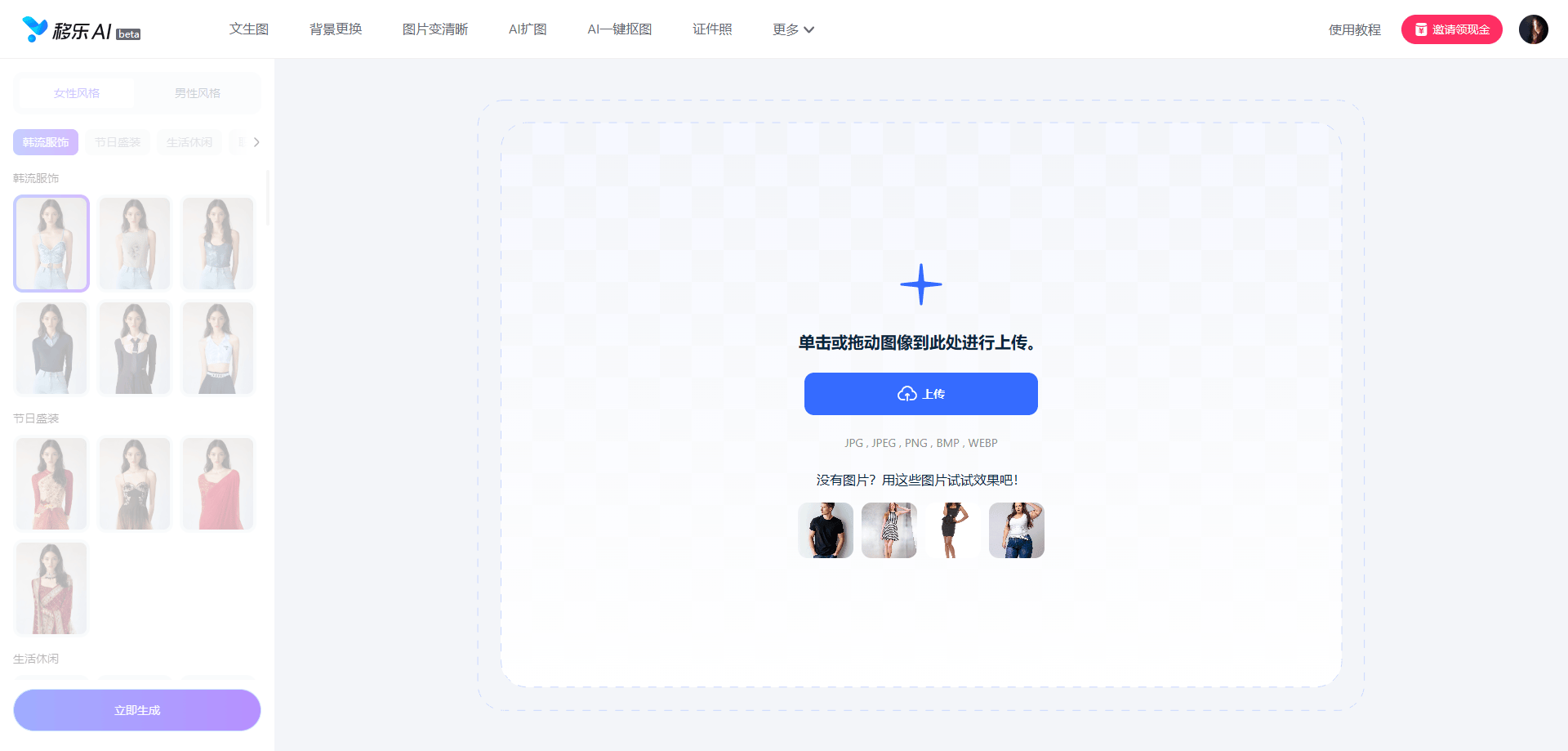 移乐AI一键换衣服:最佳虚拟试衣间,AI免费帮你试穿100+风格服饰