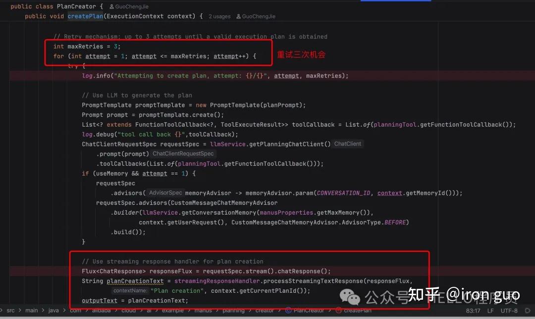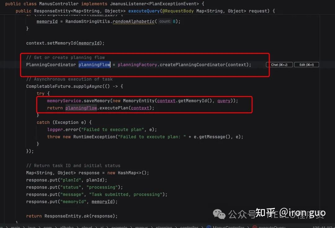 阿里开源的JManus是基于SpringAIAlibaba的Java版OpenManus框架,支持多Agent协作、PLAN-ACT模式及MCP协议,可集成云端/本地大模型。提供Docker和源码两种部署方式,支持持久化数据存储。其核心通过LLM实现智能体的规划-执行-总结流程,但尚存Azure OpenAI兼容性问题。该框架适合构建复杂AI应用,开发者可参与PR贡献完善功能。