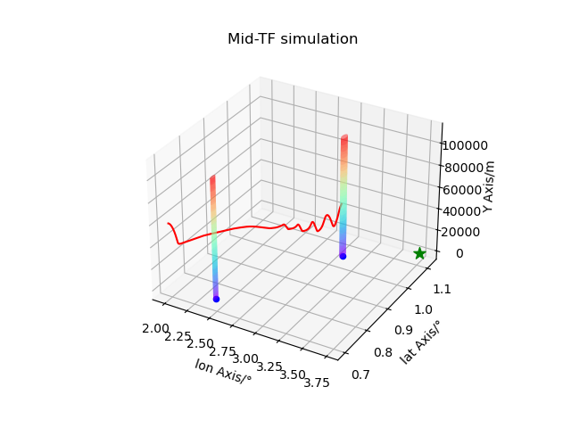 ax.scatter(py_env.target[1], py_env.target[2], py_env.target[0] - py_env.Re, color="g", marker="*",