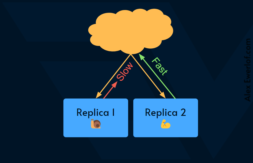 This way the latency of the system as a whole is as fast as the quickest replica.