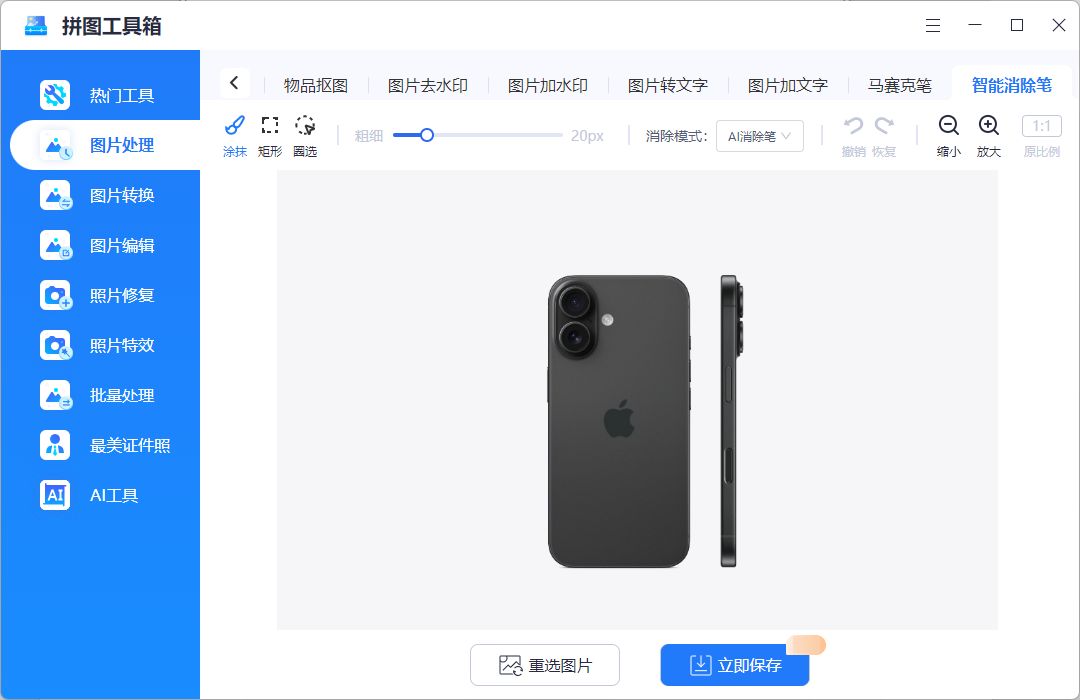 当手机屏幕限制了修图精度,或是需要批量处理照片时,电脑端的“拼图工具箱”便成了专业级补充。这款软件虽以拼图功能闻名,但其“智能消除笔”却藏着惊喜: