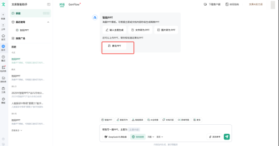 访问chatppt的官网-> 首页->上传美化PPT->美化、全文美化、单页美化等