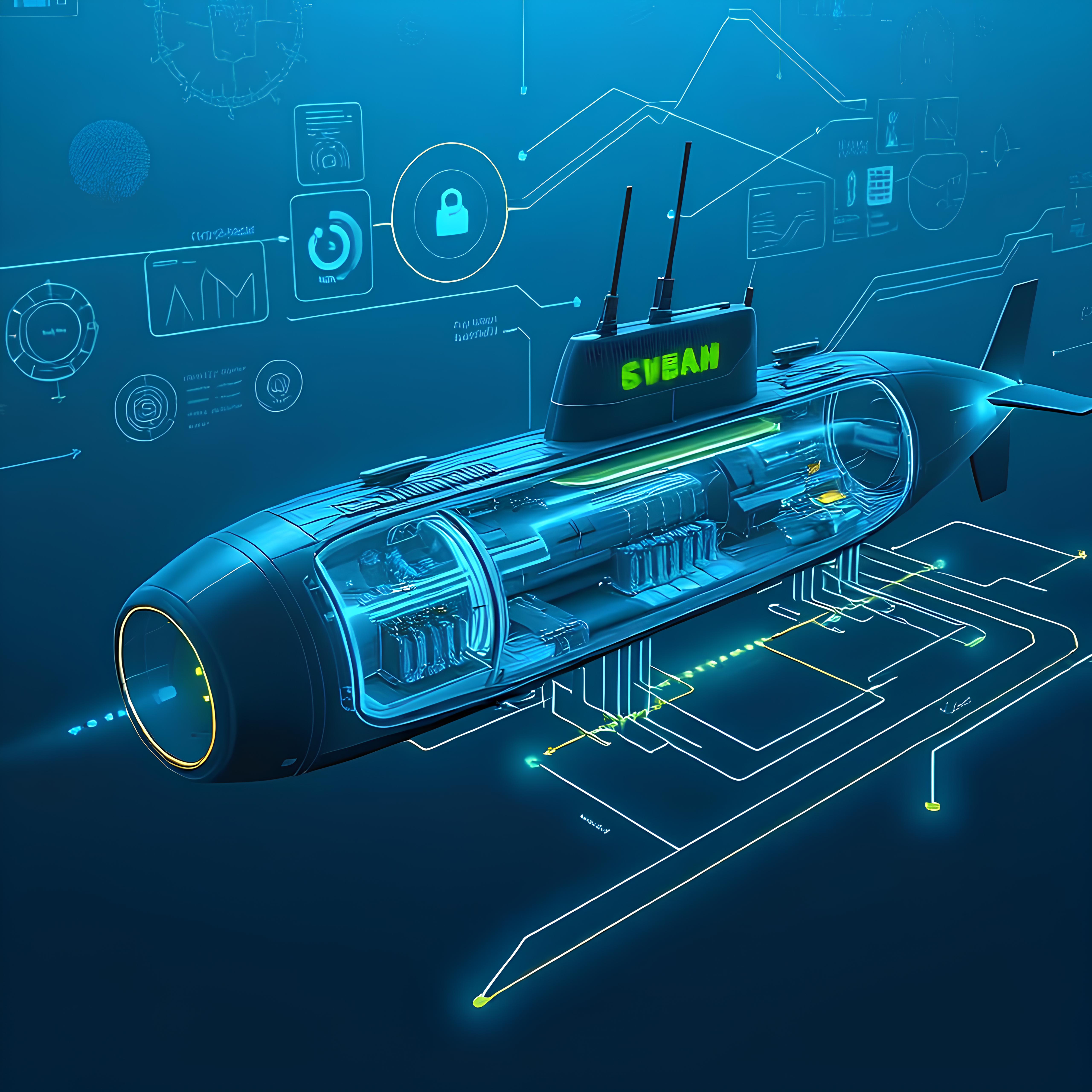 https://chatgpt.com/要求1:帮我生成 AI 图像生成器的要求描述,要生成“AI助力潜艇电网”的概念图,英文。