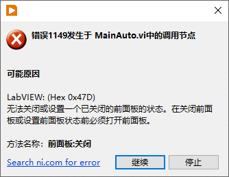 无法关闭或设置一个已关闭的前面板的状态。在关闭前面板或设置前面板状态前必须打开前面