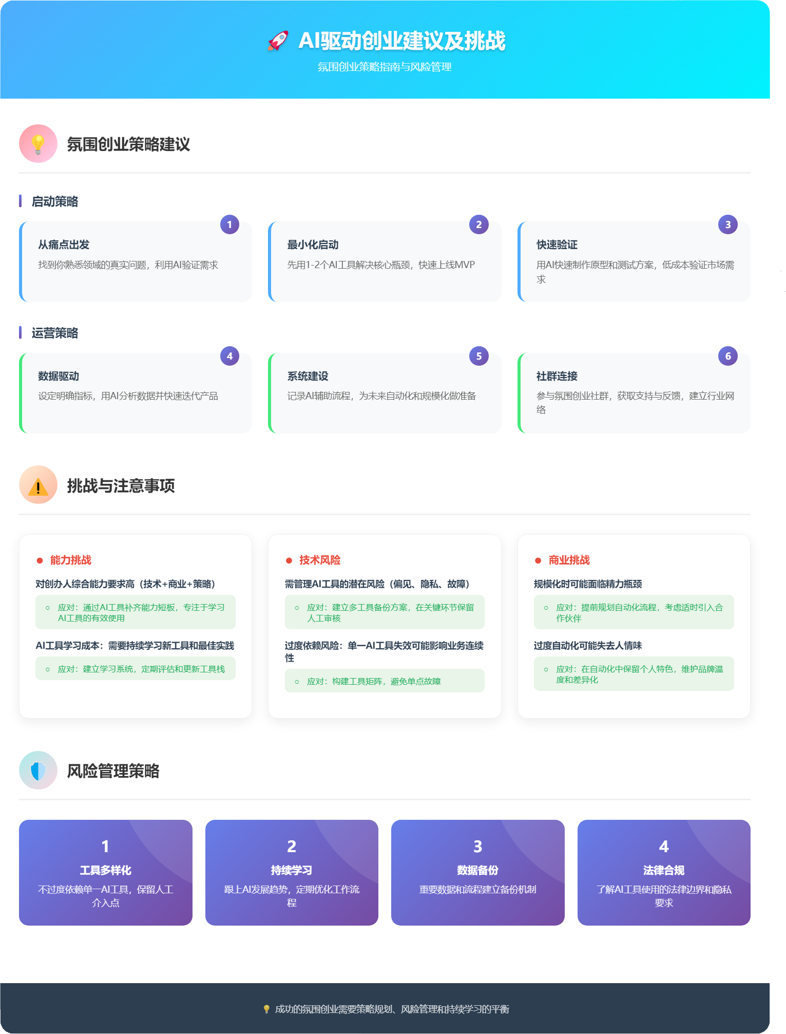 - 最小化启动:先用1-2个AI工具解决核心瓶颈,快速上线MVP