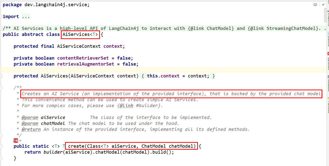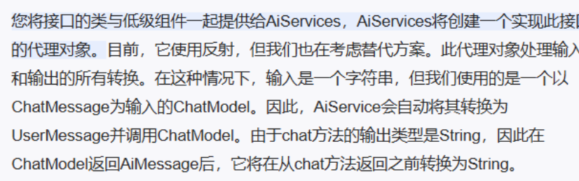 * 现在用高阶api-AIServics不用你自己写impl实现类,交给langchain4j给你搞定