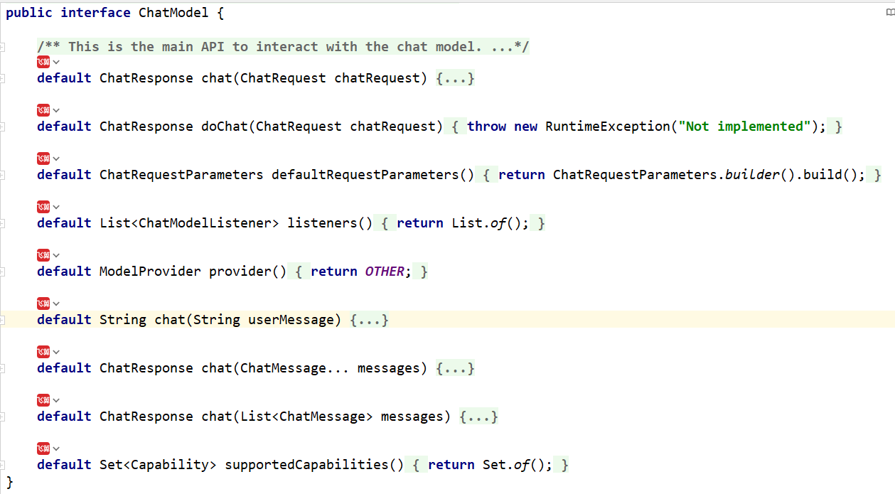 是 LangChain4j 中与 LLM 交互的低级 API,提供最大的能力和灵活性。 还有一个高级 API(AI 服务),我们将在介绍完基础知识后再讨论。