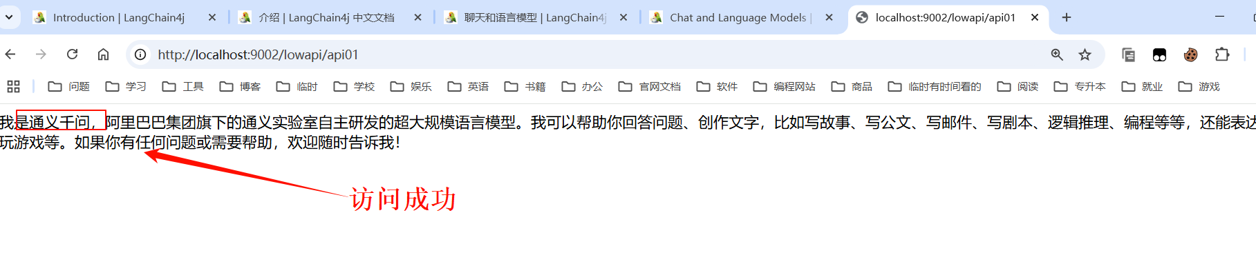 * 本次配置用的是langchain4j原生整合,没有引入sprinboot,不需要接口头上配置@AiService注解标签