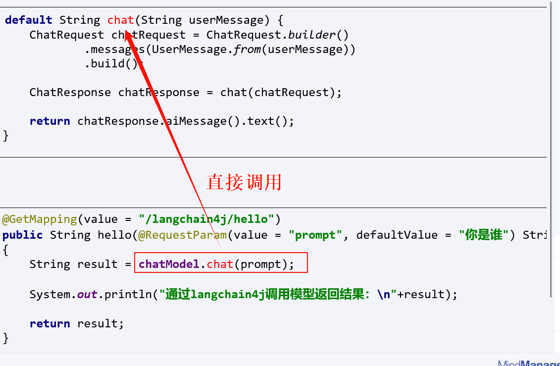 System.out.println("通过langchain4j调用模型返回结果:\n"+result);