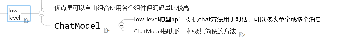 - 低层次。在这个层次上,您拥有最大的自由度和访问所有低级组件的权限,如 ChatModel,、UserMessage