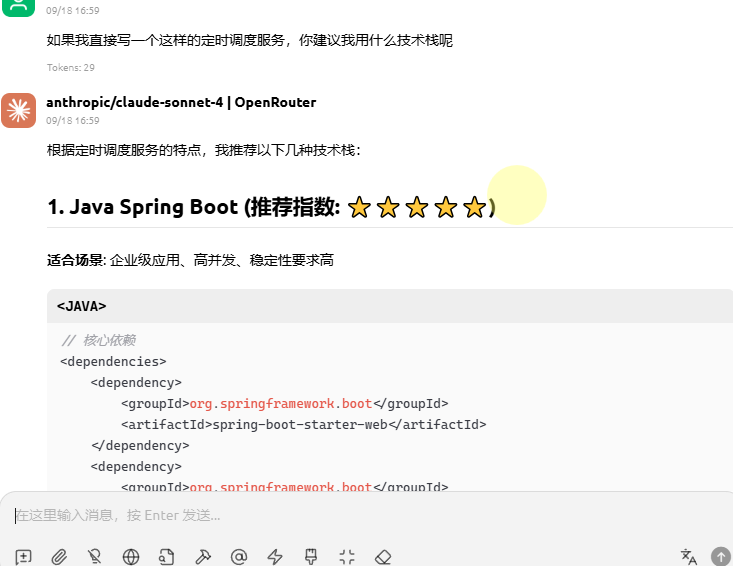 这是我的一个习惯:在开始任何项目之前,都会先让AI帮我规划技术方案。这次AI针对定时任务调度服务,为我提供了5个不同的技术方案。