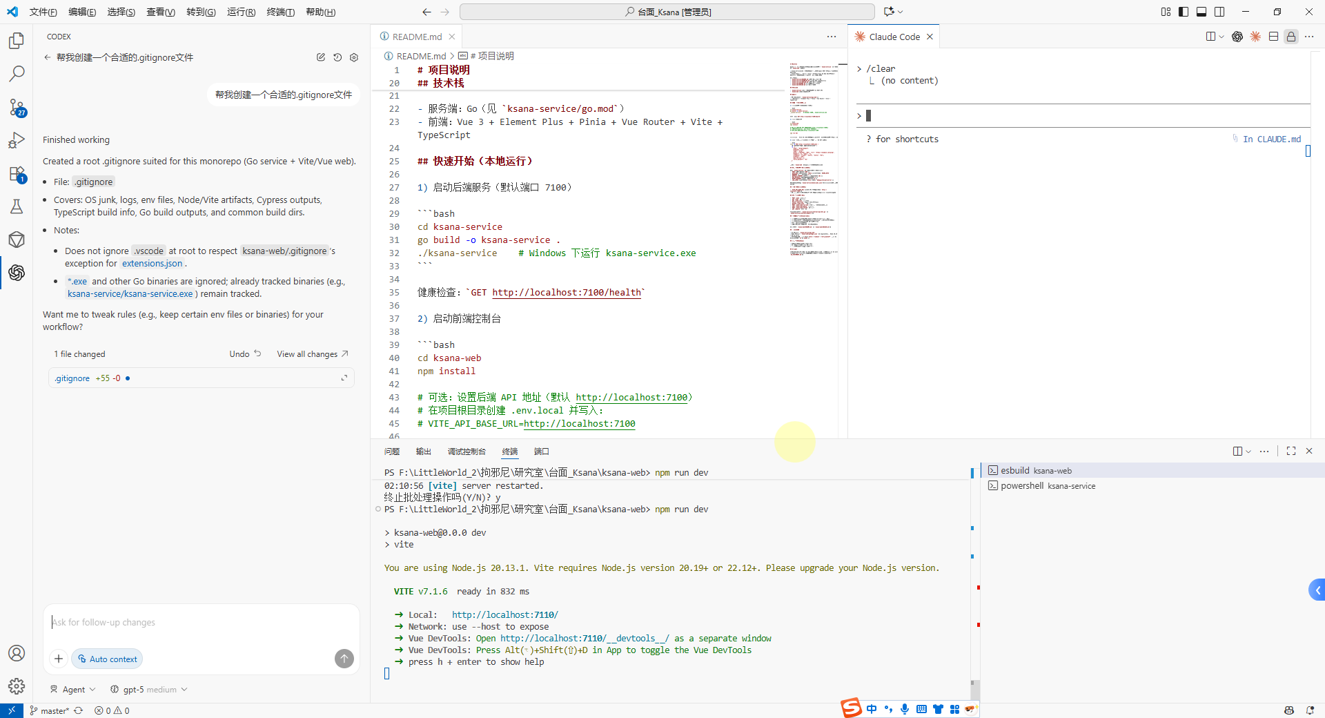 典型工作界面就是左边Chatgpt,右边Claude,中间看他们编代码
