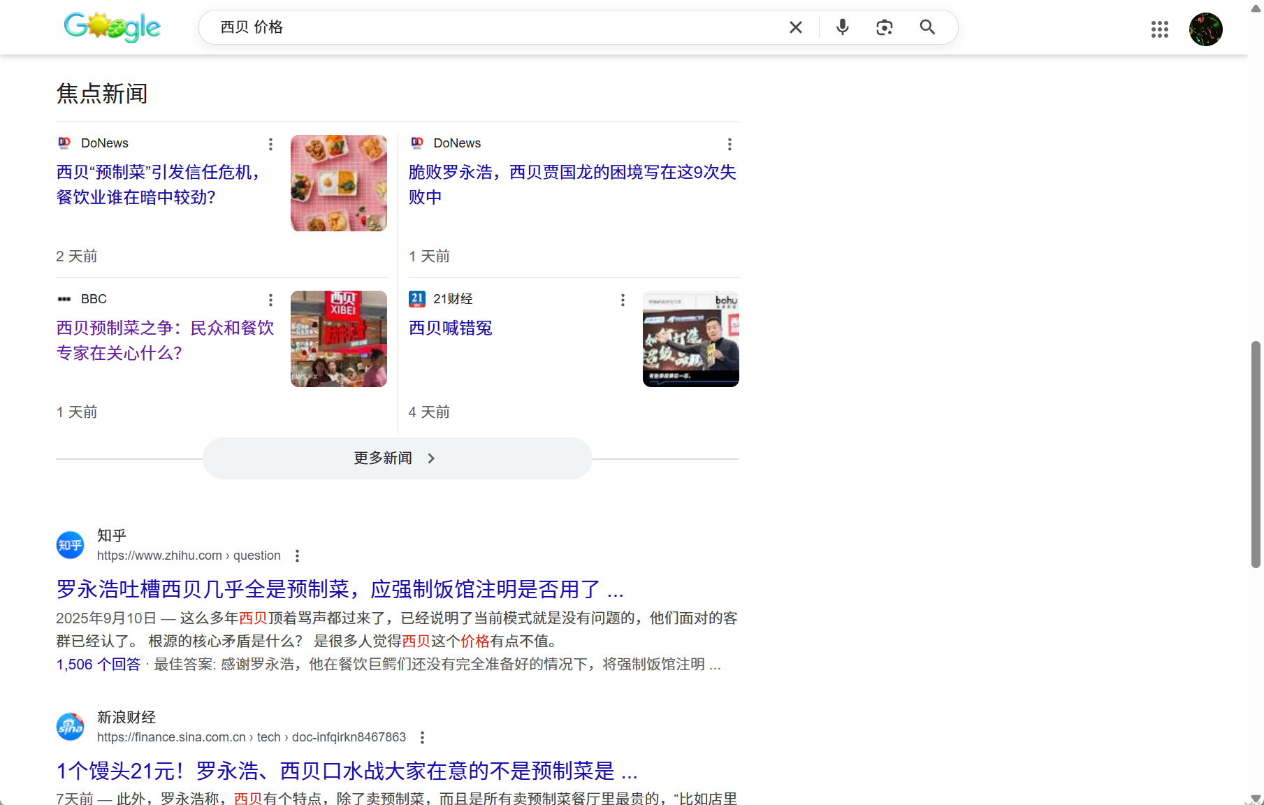 把“西贝+价格”“西贝+预制菜”这些关键词都做一遍内容覆盖,确保每个关键词对应的搜索结果里都有正面/中性声音。