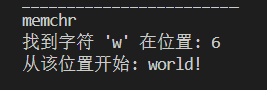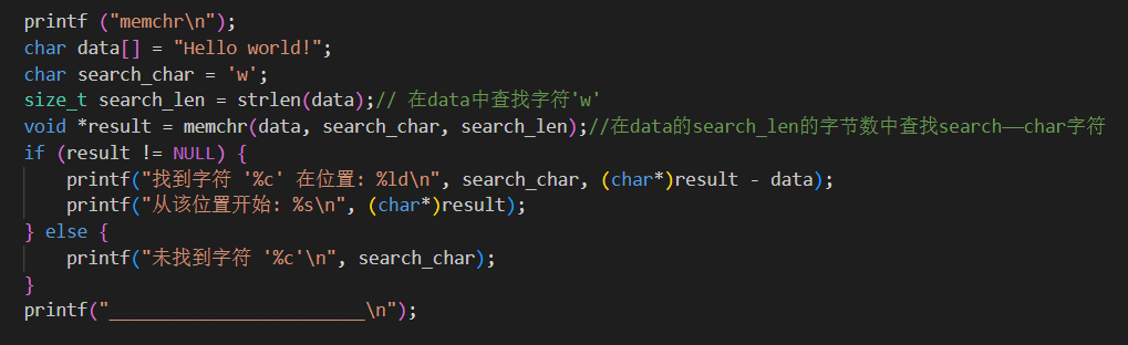 - 与 strchr 类似,但可以处理任意内存数据(不限于字符串)