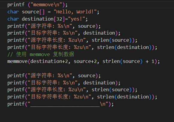 memmove 是 C 语言标准库中的一个内存操作函数,用于在内存区域之间安全地复制数据,即使源和目标内存区域有重叠也能正确处理。