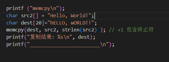 - 从源内存地址 src 复制 n 个字节到目标内存地址 dest