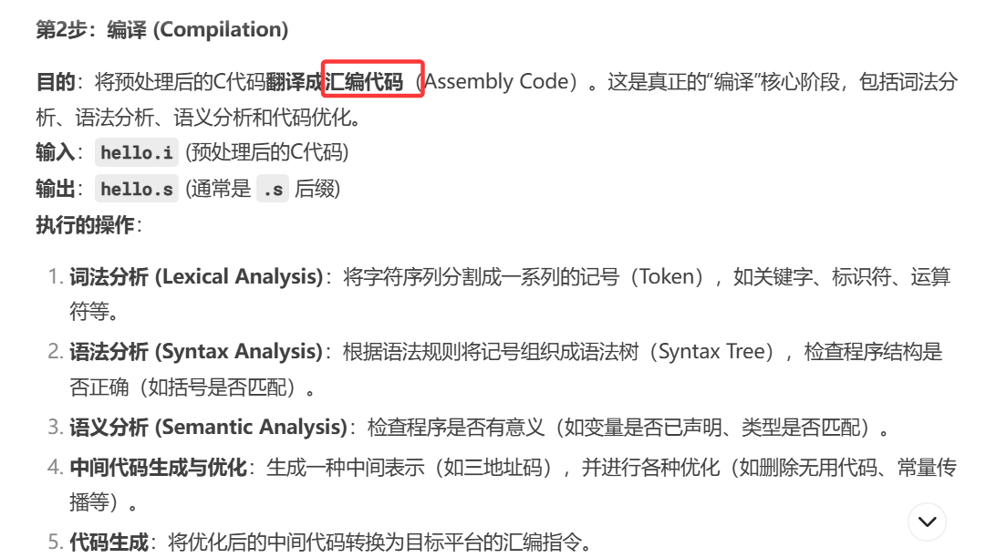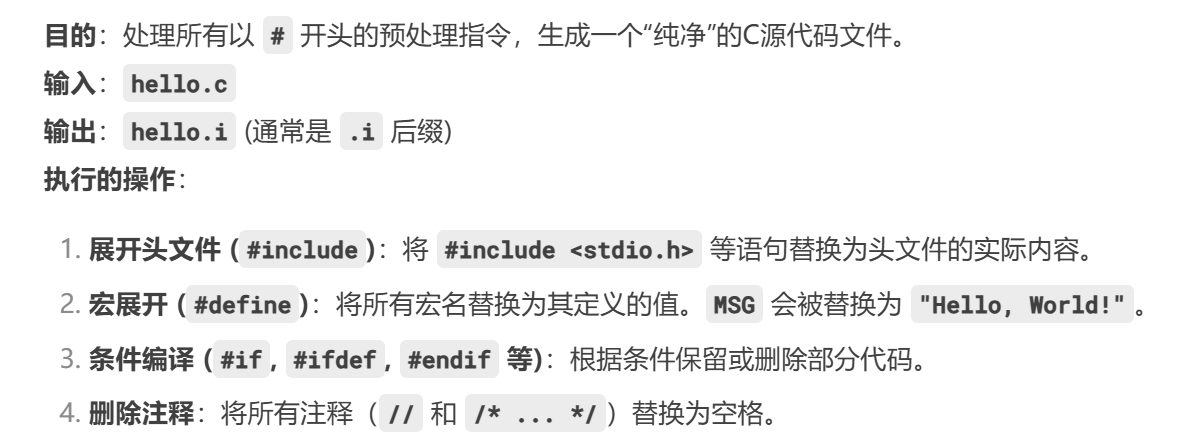 gcc -E main.c -o main.i # 生成预处理后的文件 main.i