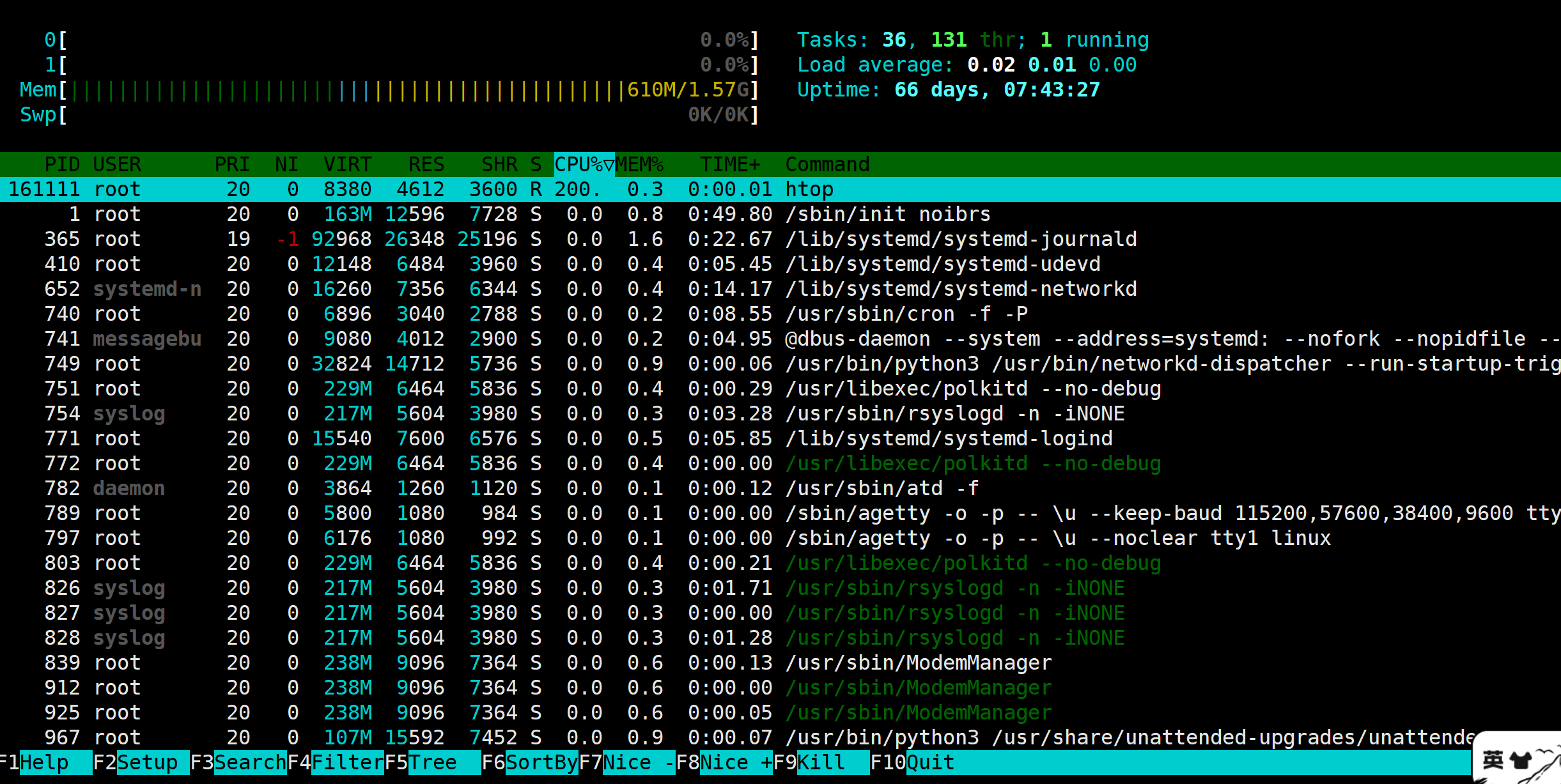 按F6, 可以按照CPU、内存、时间等对进程排序,快速定位资源消耗大户