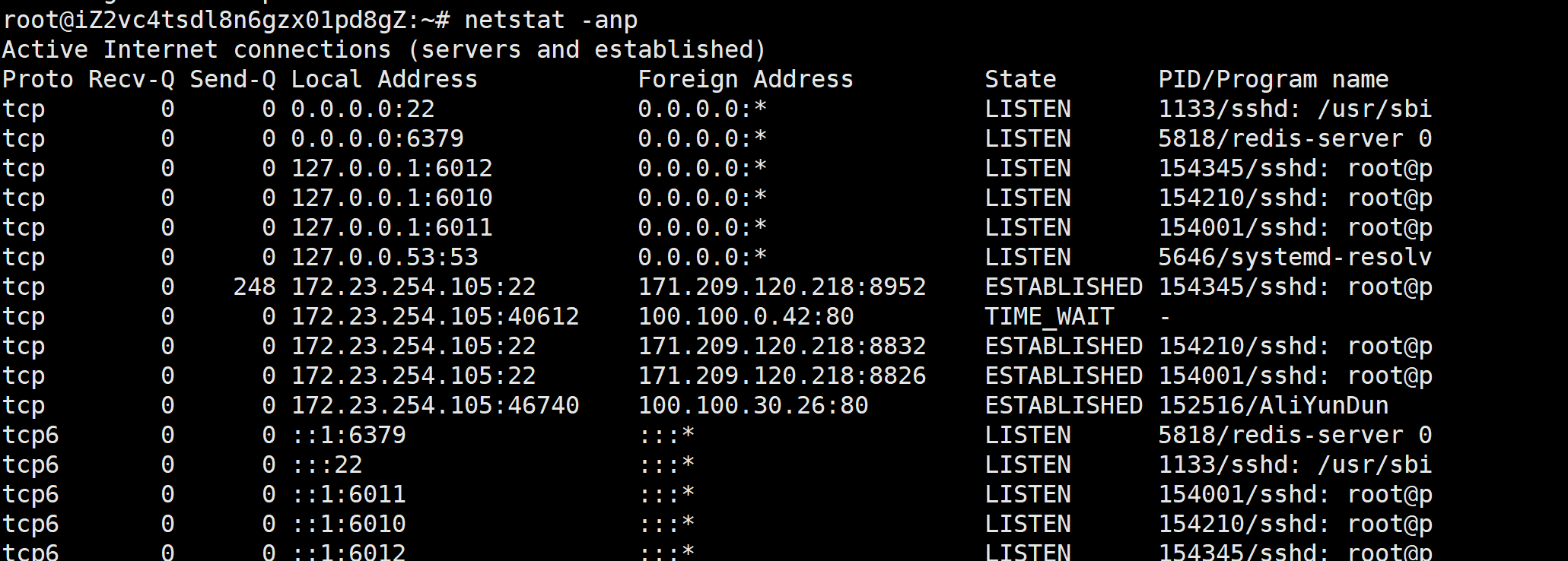 -n:显示数字形式的地址而不是去解析主机,端口号或者用户名