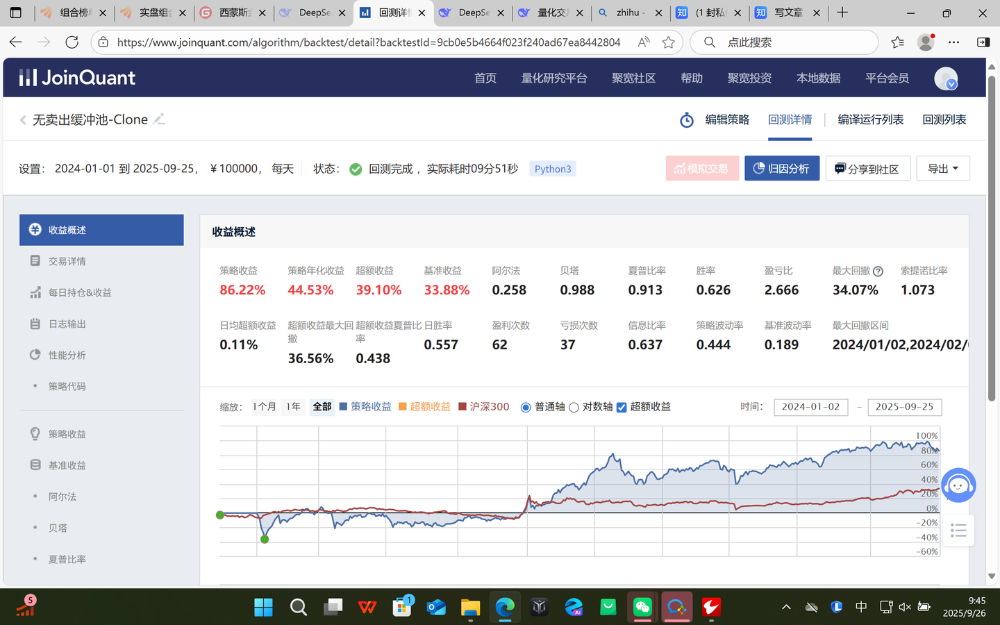 这是一个相对成熟的多因子选股策略,结合了价值投资(基本面)和技术分析(涨停板),在小市值因子的基础上增加了严格的风险控制。排除涨停股(价格超过前收97%)和跌停股(价格低于前收104%)not_buy_again_list:30天内持有过的股票。排除ST、停牌、次新股(上市不足250天)1. 选股逻辑(my_Trader函数)如果涨停板打开(现价<涨停价),立即卖出。just_sold:近期涨停卖