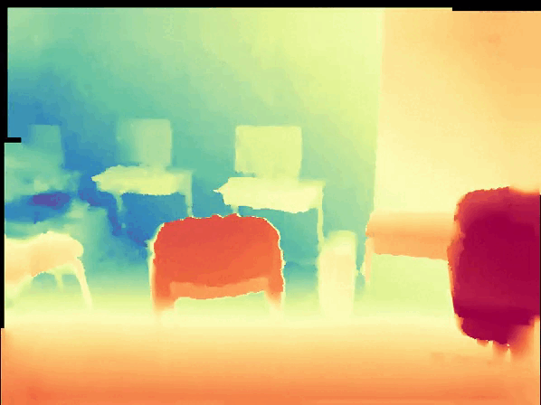 尽管预填充的粗略密集深度在度量上通常是准确的,但这种无参数方法对深度先验中的噪声很敏感。一个位于模糊边缘上的噪声像素就可能扰乱所有依赖其作为支撑点的填充区域。