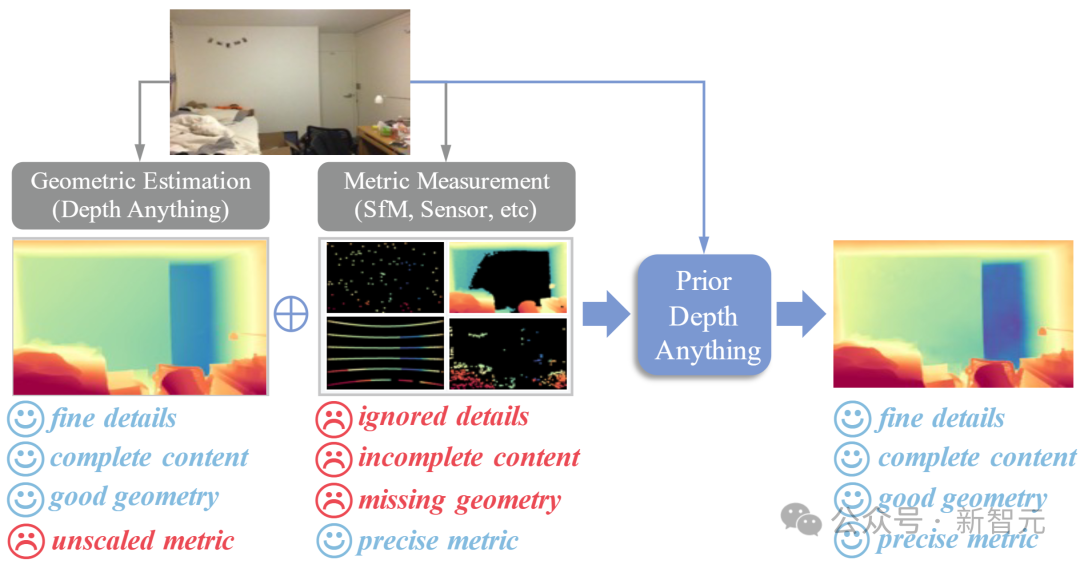 另一方面,深度测量技术,如运动结构(SfM)或深度传感器,提供了精确但往往不完整和粗略的度量信息。