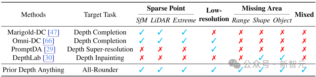 现有的方法主要集中在特定的、有限的先验,限制了它们在现实场景的使用。而Prior Depth Anything则对任意形式的深度先验都有令人印象深刻的鲁棒性。