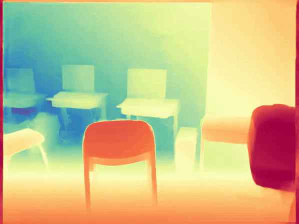 给定RGB图像(第一个)及其相应的深度传感器测量深度图(第二个),Prior Depth Anything可以有效地校正所谓「ground truth」深度图中的噪声,填充空缺区域最后输出详细的、完整的并且度量精确的深度图(第三个)。