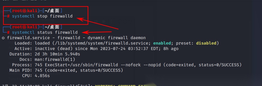 关闭kali Linux的防火墙,不关闭可能网页无法显示