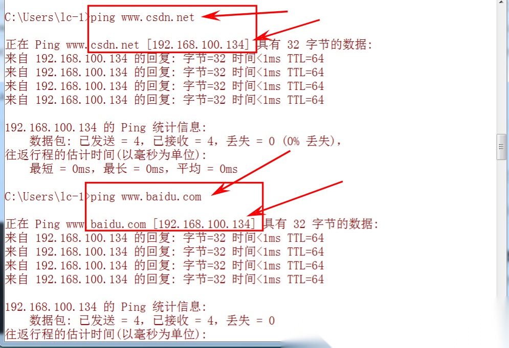 此时ping百度和csdn,发现返回的是kali的ip地址,DNS欺骗成功