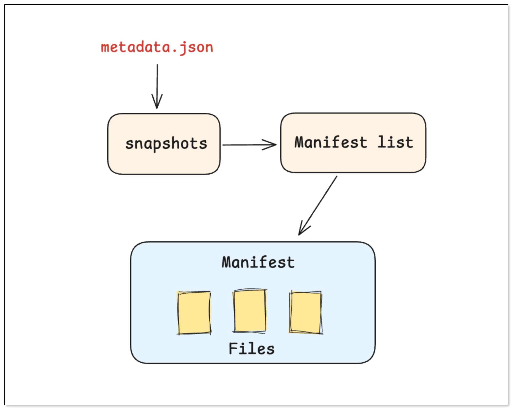 Iceberg 的元数据设计采用了层次分明的 树状结构。这种结构使得查询引擎可以从顶层元数据开始,逐层向下筛选,从而实现高效的元数据剪枝。