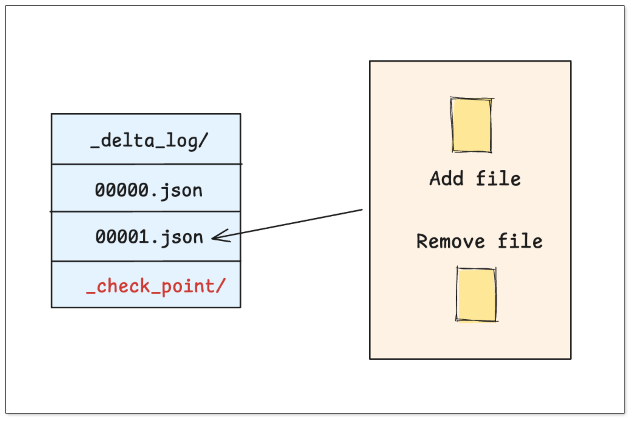 - 复制写入 :读取旧文件,在内存中修改后,写入一个新文件 ,然后在 /_delta_log 中记录日志。