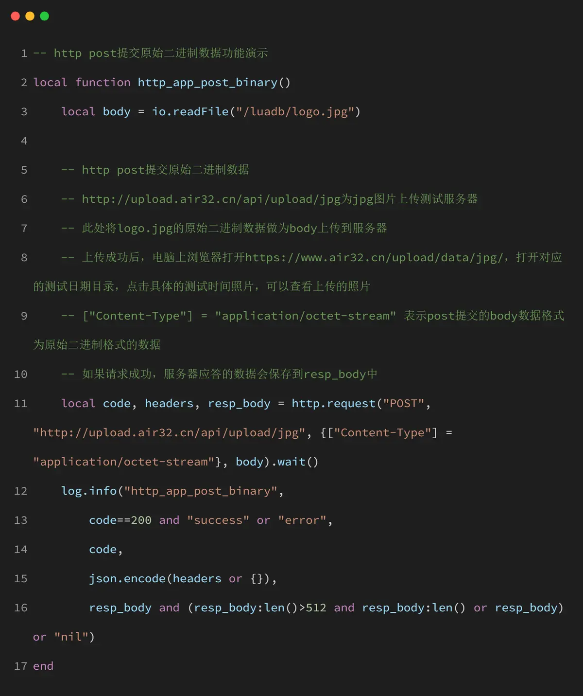 http_app_post_binary() 函数演示了如何发送原始二进制格式的 POST 情况: