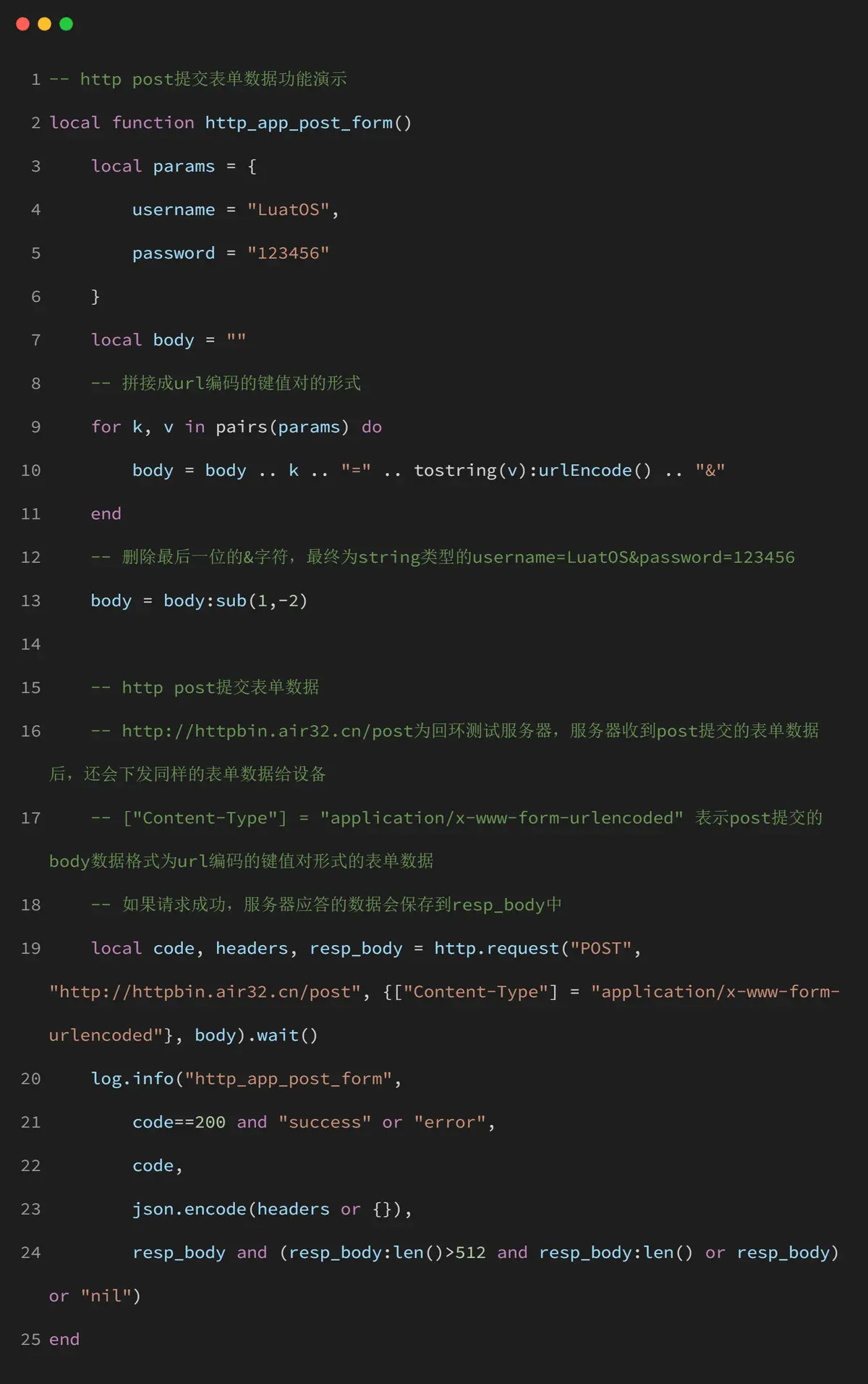 http_app_post_form() 函数演示了如何发送表单格式的 POST 请求: