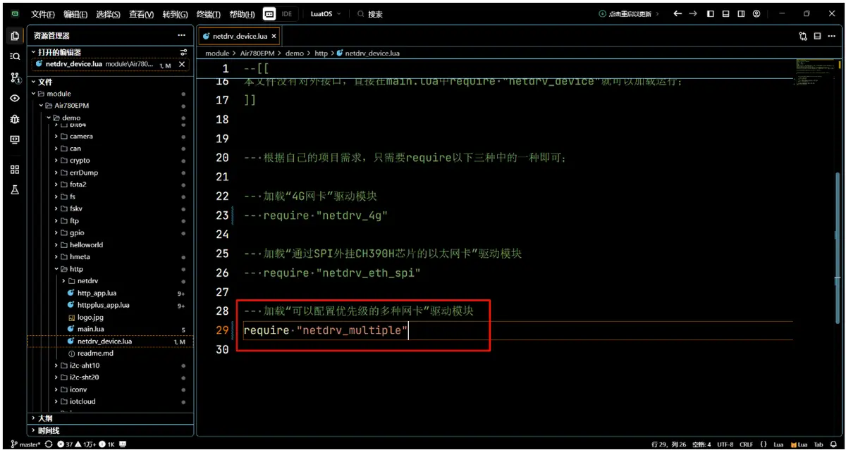 首先在 netdrv_device.lua 文件中只打开 netdrv_multiple 模块。