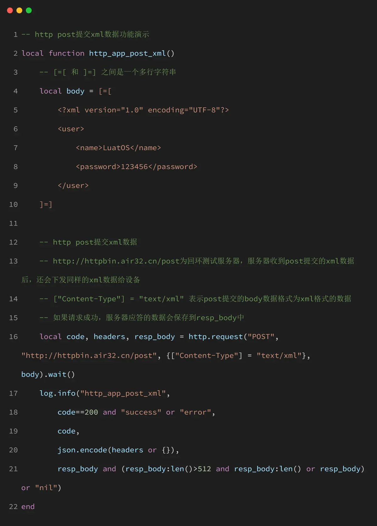 http_app_post_xml() 函数演示了如何发送 XML 格式的 POST 请求: