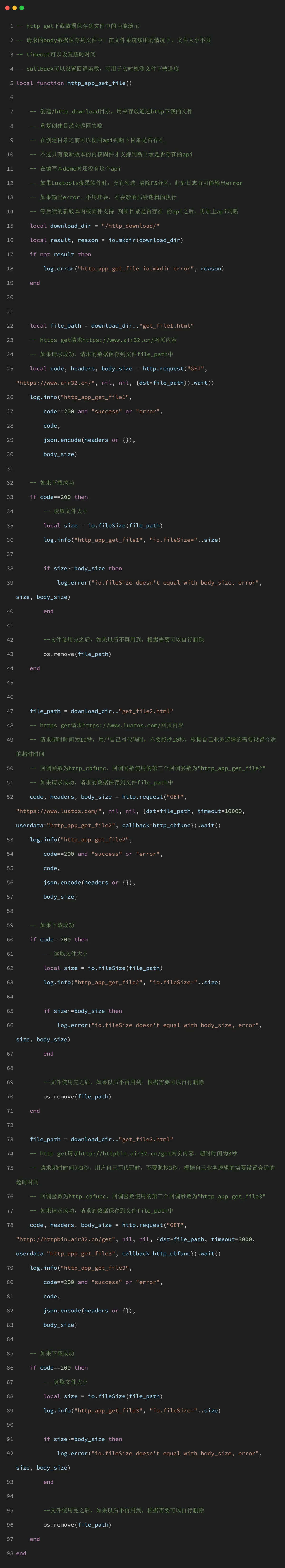 http_app_get_file() 函数演示了如何将 HTTP 响应直接保存到文件:
