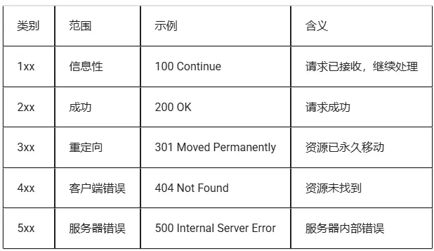 Status Code:三位数字,标识请求的处理结果,如 200、404。