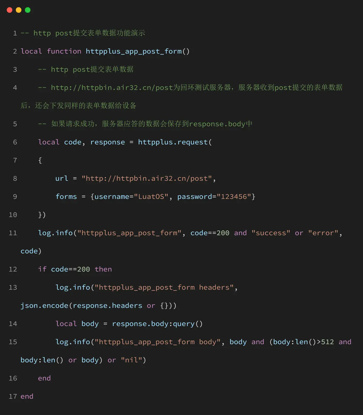 httpplus_app_post_form() 函数演示了如何发送表单格式的 POST 请求: