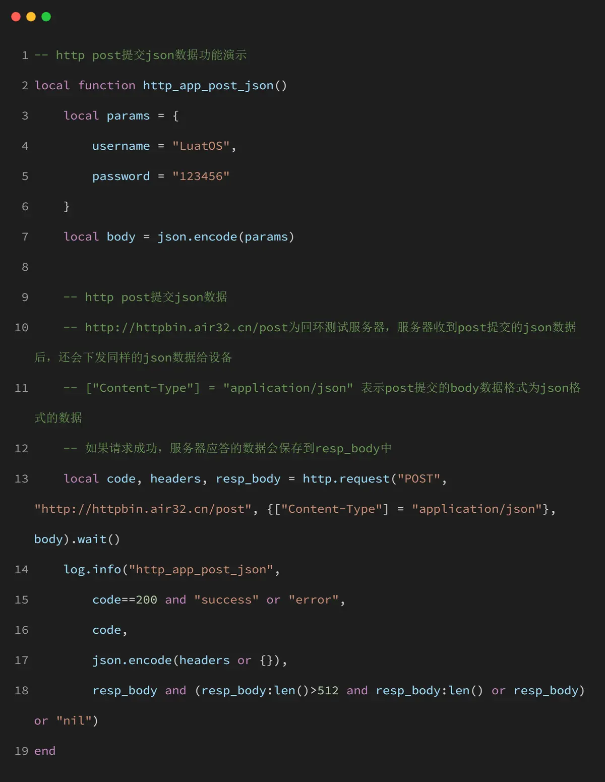 http_app_post_json() 函数演示了如何发送 JSON 格式的 POST 请求: