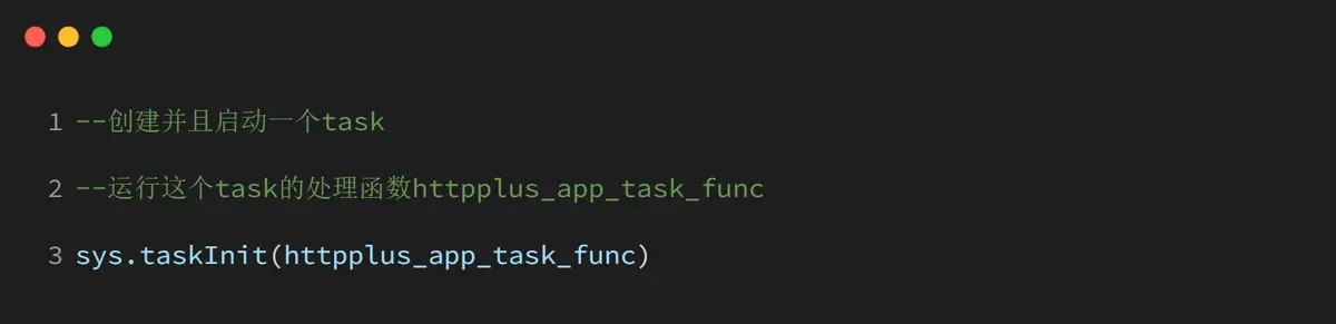 通过 sys.taskInit 函数创建并启动一个新的任务来运行 httpplus_app_task_func 函数,使整个模块的功能在后台持续运行。