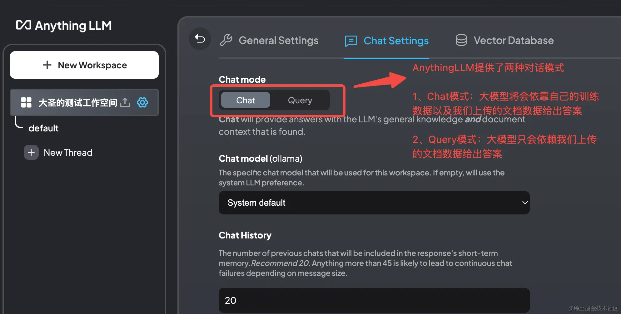 AnythingLLM中有一个Workspace的概念,我们可以创建自己独有的Workspace跟其他的项目数据进行隔离。