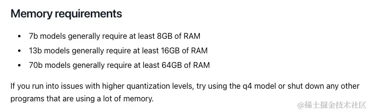 考虑到我机器的配置以及不同版本的内存要求,我这里选择7b参数的模型