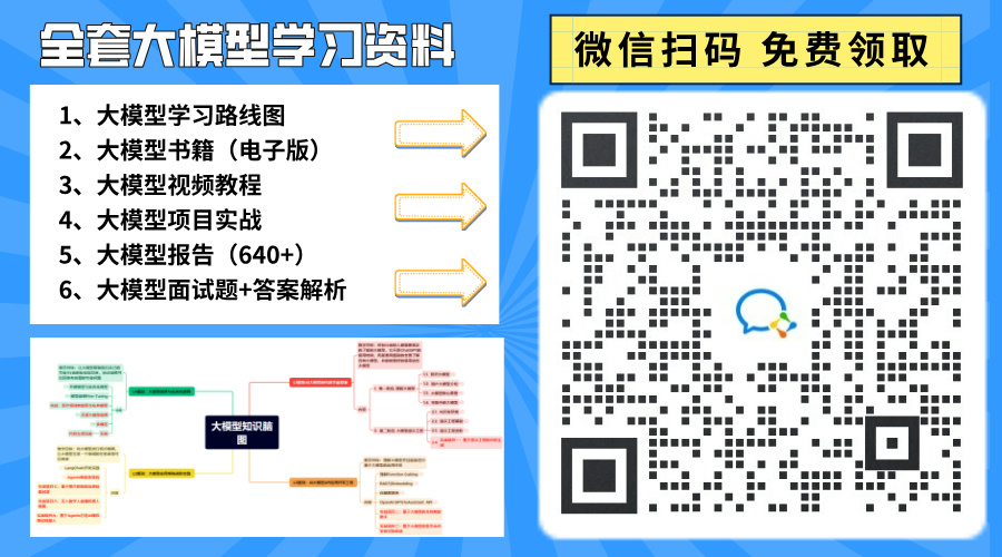 这份完整版的大模型 AI 学习资料已经上传CSDN,朋友们如果需要可以微信扫描下方CSDN官方认证二维码免费领取【保证100%免费